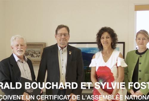 Gérald Bouchard et Sylvie Foster reçoivent un certificat de l’Assemblée nationale